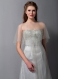 Home >  Bridesmaid Dresses >  Elegant Bridesmaid Dresses > Customize Gray A-line Strapless Beading Bridesmaid Dress Floor-length Tulle and Taffeta