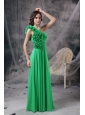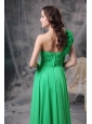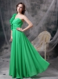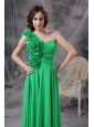 Customize Green Empire One Shoudler Prom Dress Chiffon Hand Made Flowers Floor-length