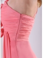 Your prom dress should reflect your style and if you're looking for something totally different and unique to accommodate that style, this might be just the dress for you. The floral embellishments feature a gorgeous sweetheart ruched bodice and the one shoulder. The side of the bodice has a zipper style closure. It boasts a traditional floor length skirt, which is quite glamorous. It is a great choice for you. You can not miss it.