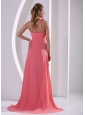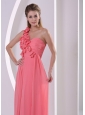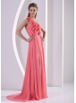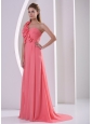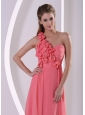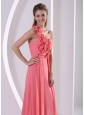 Customize Hand Made Flowers One Shoulder Watermelon Prom Evening Dress With Brush Train