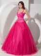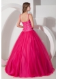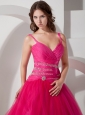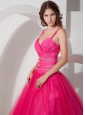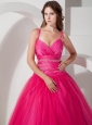 Customize Hot Pink Spaghetti Straps Quinceanera Dress Tulle Beading