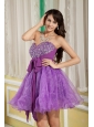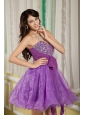 Customize Lavender A-line / Princess Cocktail Dress Sweetheart Mini-length Organza Beading