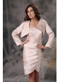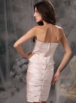 Customize Light Pink Mother of the Bride Dress Column / Sheath Strapless Satin Ruch Knee-length