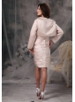 A modern look is achieved with this ivory dress. This strapless satin design features a straight neckline, and hemline that falls to mid-thigh. Pleats on waist along with the rhinestone accents highlight your figure well.The matching jacket and a hidden ziper up back completes the look well.You are sure to be current this season in this creation.