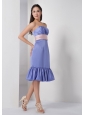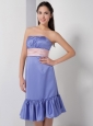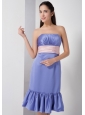 Customize Lilac Column Strapless Bridesmaid Dress Elastic Woven Satin Belt and Ruch Knee-length