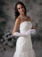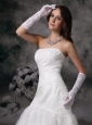 This richly embellished strapless style Bridals will make you feel like royalty. French-inspired filigrees of contrasting bead-studded lace adorn the corset-shaped bodice to the dropped waist. The strapless bodice curves slightly for a contoured effect, and sectional seaming tailors a custom fit from bodice to hips.The round hemline bells prettily at floor-length. An opulent option for your cathedral ceremony.
