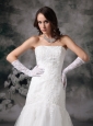 Home >  Wedding Dresses >  Beautiful Wedding Dresses > Customize Mermaid Strapless Wedding Dress Tulle Lace Brush Train