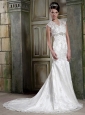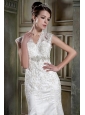 Home >  Wedding Dresses >  Affordable Wedding Dresses > Customize Mermaid / Trumpet V-neck Court Train Elastic Wove Satin and Lace Beading and Appliques Wedding Dress