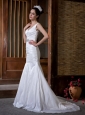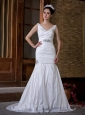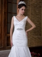 Home >  Wedding Dresses >  Popular Wedding Dresses > Customize Mermaid V-neck Wedding Dress Court Train Taffeta Ruch and Beading