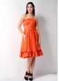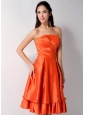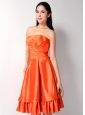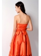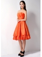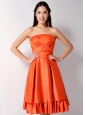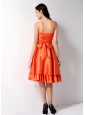 Customize Orange Red A-line Strapless Bow Bridesmaid Dress Knee-length Taffeta