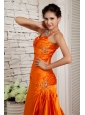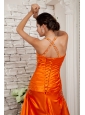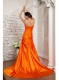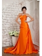 Home >  Prom Dresses >  Modest Prom Dresses > Customize Orange Red A-line Straps Prom / Evening Dress Elastic Woven Satin Beading Brush Train