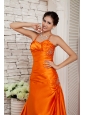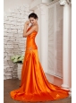 Customize Orange Red A-line Straps Prom / Evening Dress Elastic Woven Satin Beading Brush Train