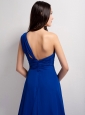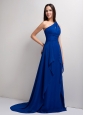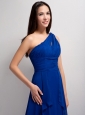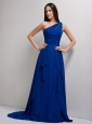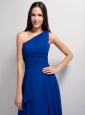 Home >  Bridesmaid Dresses >  Elegant Bridesmaid Dresses > Customize Peacock Blue A-line One Shoulder Ruch Bridesmaid Dress Court Train Elastic Wove Satin and Chiffon