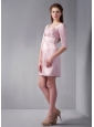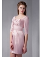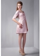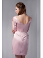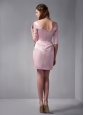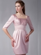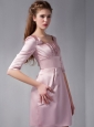 Customize Pink Column Square Ruch Bridesmaid Dress Mini-length Satin