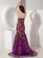 Customize Purple and Gold Trumpet / Mermaid Evening Dress Strapless Special Fabric Beading Court Train