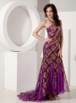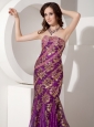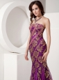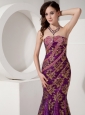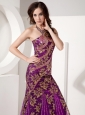 All eyes will definitely be on you in this stunning evening gown. It has so many design elements that we don't even know where to begin describing it! This fabulous gown is just perfect for any would-be prom queen. Charming purple prom dress with gold printed flower make the dress gorgeous. The mermaid style can show off your ghostlike style and attract all the men's eyes. What is most attractive is the dress style, the tulle outlayer add elegant tone for this fantastic dress. A zipper up back finishes the look.