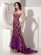 Home >  Evening Dresses > Customize Purple and Gold Trumpet / Mermaid Evening Dress Strapless Special Fabric Beading Court Train