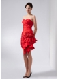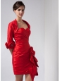 Home >  Prom Dresses >  Short Prom Dresses > Customize Red Column Sweetheart Mini-length Taffeta Hand Made Flowers Prom Dress