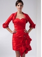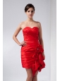 Customize Red Column Sweetheart Mini-length Taffeta Hand Made Flowers Prom Dress
