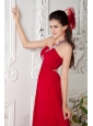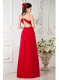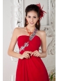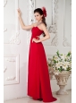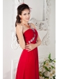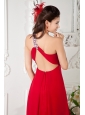 Customize Red Empire One Shoulder Prom / Evening Dress Chiffon Appliques Brush Train