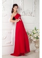 Home >  Prom Dresses >  Modest Prom Dresses > Customize Red Empire One Shoulder Prom / Evening Dress Chiffon Appliques Brush Train