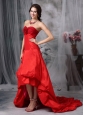 Customize Red Sweetheart High-low Prom Dress with Hand Made Flowers
