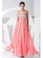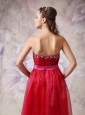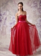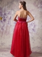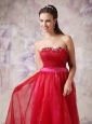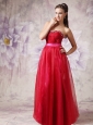 You will be the most popular one if you are in this red evening dress in the prom. The stunning bodice has a sweetheart neckline that adorned with exquisite beadings and ruchings, while the pink waistband can definitely show your natural waistline. The elegant skirt flows freely to the floor and a zipper up back completes this fabulous design.