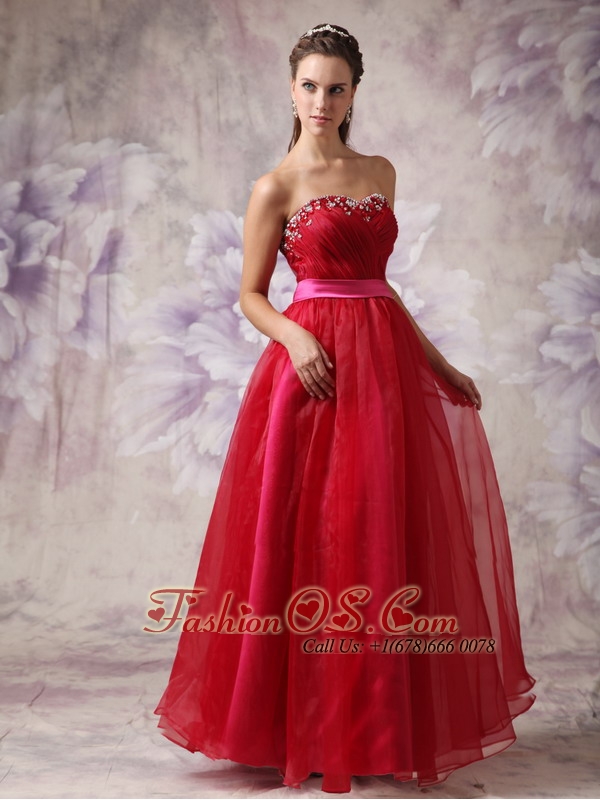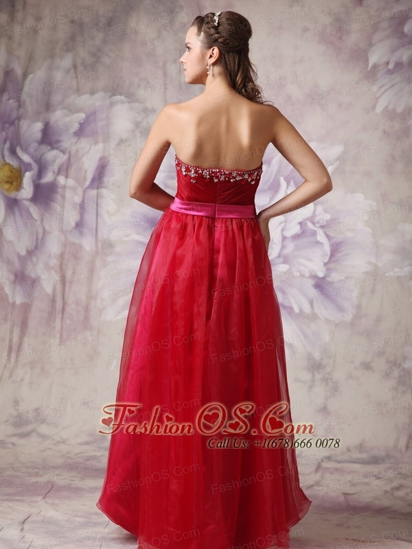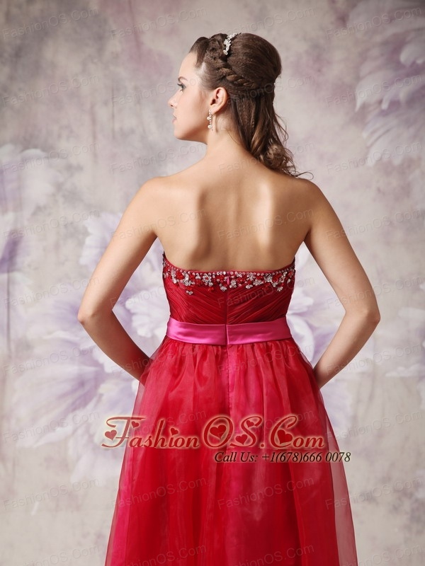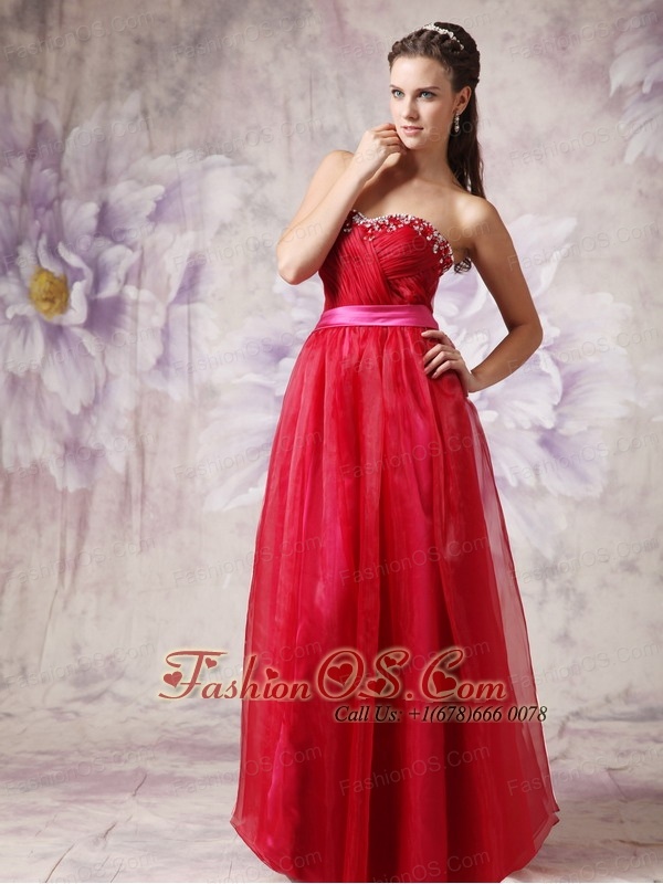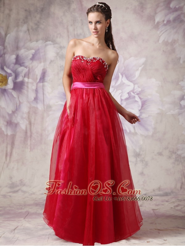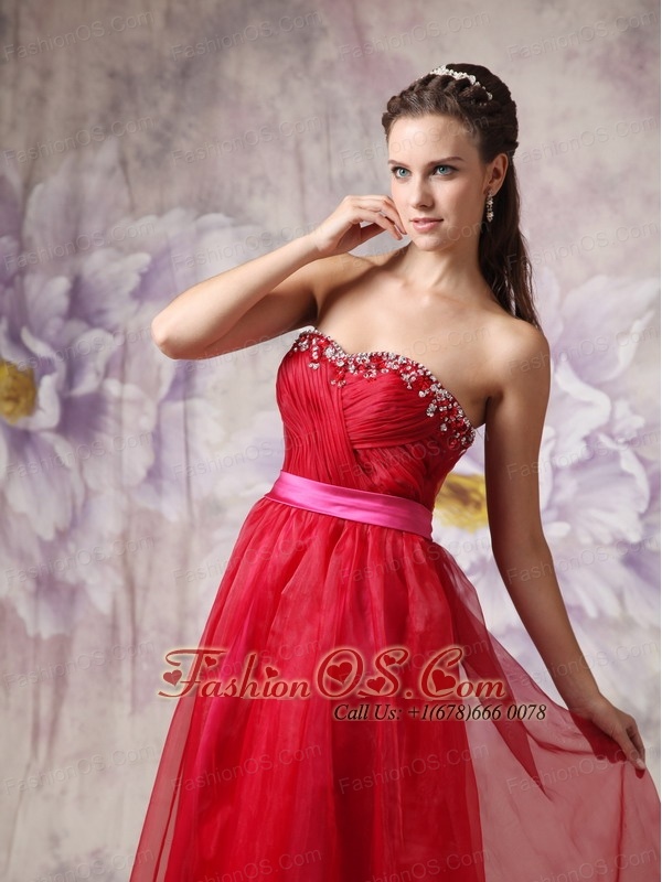 Customize Red Sweetheart Prom / Evening Dress with Fuchsia Slash