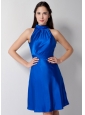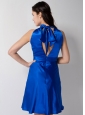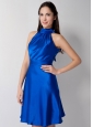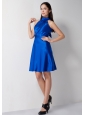 Customize Royal Blue A-line High-neck Bridesmaid Dress Knee-length Taffeta