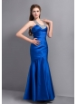 Customize Royal Blue Mermaid Halter Beading Prom Dress Ankle-length Taffeta