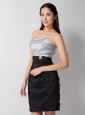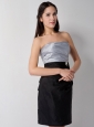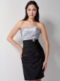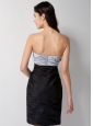 Customize Silver and Black Column Bridesmaid Dress Strapless Mini-length Taffeta