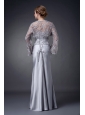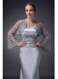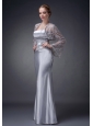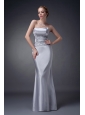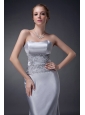 Customize Silver Column Strapless Mother Of The Bride Dress Elastic Woven Satin Appliques Floor-length