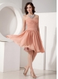 Be a lovely lady on your prom! This cute knee length prom dress has a dropped waist which is funky and modern. And the ruched details on the bust area embellishes the dress beautifully. The fitted bodice and soft chiffon make the dress fit any figure while the mini-length skirt is so pure to show your sexy legs, and the zipper up style add elegance and modesty to this perfect gown.