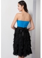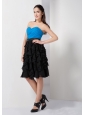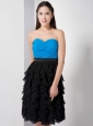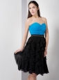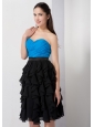 Home >  Bridesmaid Dresses >  Elegant Bridesmaid Dresses > Customize Sky Blue and Black A-line Sweetheart Bridesmaid Dress Chiffon Ruch and Ruffles Knee-length