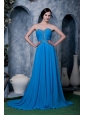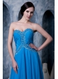 Customize Sky Blue Prom Dress Empire Sweetheart Chiffon Beading Brush Train