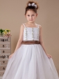 Customize Straps A-Line Beaded Organza Wedding Party Flower Girl Dress