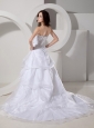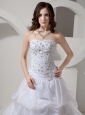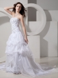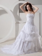 Customize Stylish Appliques Organza Strapless Chapel Train Wedding Dress