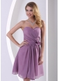 Silhouette: A-line Neckline: Sweetheart Waist: Fitted Hemline/Train: Knee-length Sleeve Length: Sleeveless Embellishment: Ruch and Hand Made Flower Back Detail: Zipper-up Fully Lined: Yes Built-In Bra: Yes Fabric: Chiffon Shown Color: Dark Purple(Color & Style representation may vary by monitor.) Occasion: Prom, Formal Evening Occasion: Wedding Party, Formal Evening Keyword: Michigan, 2013 Cocktail Dress, Buy Homecoming Dress