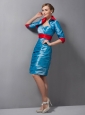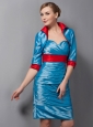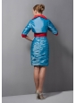 Unique and fashionable! This fantastic dress is outstanding for the whole ruched details and contrasting colors of red and blue. The red color of the broad waistband and the inner fabric of the matching jacket highlight the whole looking and add the dress a temperament of sophistication and modesty. The ruched bodice has a sweetheart neckline which shows off enough skin to reveal sexy appeal. The knee-length skirt is also ruched to complete the whole looking. The hidden zipper on the back allows easy off and on and secures the dress in place.