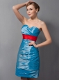 Home >  Special Occasion Dresses >  Mother of the Bride Dresses > Customize Teal Column Mother Of The Bride Dress Belt Sweetheart Mini-length Taffeta