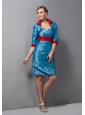 Customize Teal Column Mother Of The Bride Dress Belt Sweetheart Mini-length Taffeta