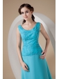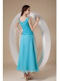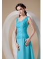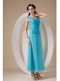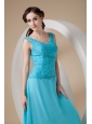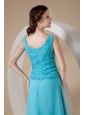 Customize Teal Column / Sheath Wide Straps Ankle-length Prom Dress Chiffon
