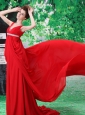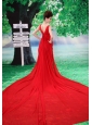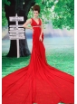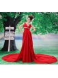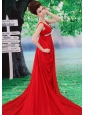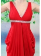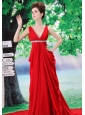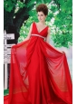 Customize V-neck Red 2013 Prom Dress With Beading and Ruch In Celebrity