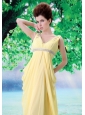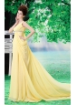 Customize V-neck Yellow 2013 Prom Dress With Beading and Ruch In Celebrity