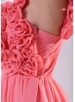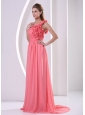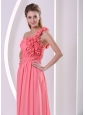 Customize Watermelon Hand Made Flowers One Shoulder Prom Celebrity Dress With Ruch Bodice