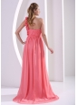 Your prom dress should reflect your style and if you're looking for something totally different and unique to accommodate that style, this might be just the dress for you. The floral embellishments feature a gorgeous sweetheart ruched bodice and the one shoulder. The side of the bodice has a zipper style closure. The brush train finishes the look of this watermelon dress. It is a great choice for you. You can not miss it.