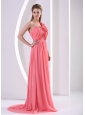 Home >  Prom Dresses >  New Arrivals > Customize Watermelon Hand Made Flowers One Shoulder Prom Celebrity Dress With Ruch Bodice