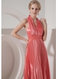There's just something about classical-inspired gowns that no other style can duplicate. They evoke a certain charm that you just can't find in the newer styles. All-over pleated material makes this gown extra special. Dramatic touches include the halter top strap ties like a bowknot and a seductive open back that will have heads turning the moment you arrive. The striking beading in matching color accentuates your torso. A hidden zipper in the back secures the dress in place and ensures a great fit.