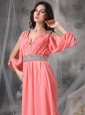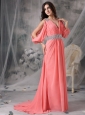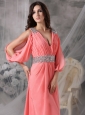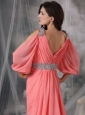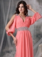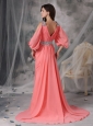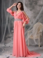Home >  Prom Dresses >  Unique Prom Dresses > Customize Watermelon Red V-neck Prom / Evening Dress Chiffon Beading Court Train