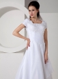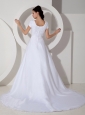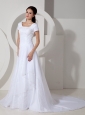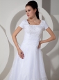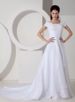 Customize Wedding Dress A-line Square Beading and Ruch Court Train Organza